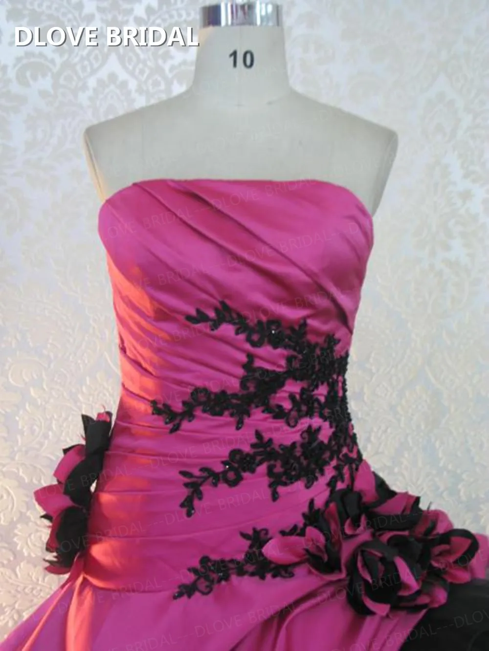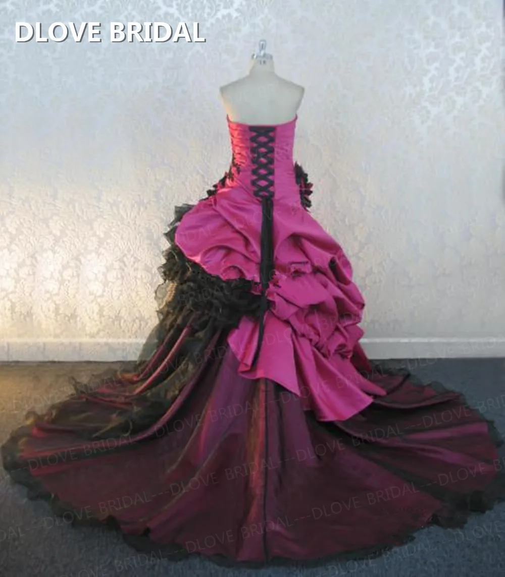 Special Offer Vestido De Casamento Colorido De Alta Qualidade Fúcsia Cetim Bola Vestido Strapless Vestidos De Noiva Com Apliques De Renda Preta Discount 0% Today!