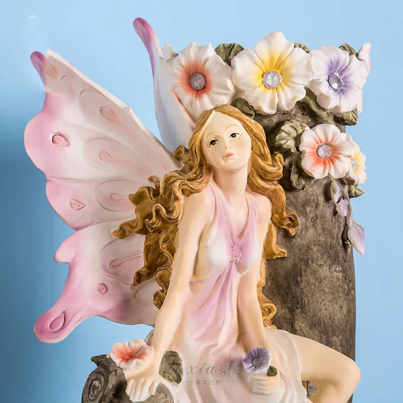 Product Name: Criativo Borboleta Fada Sentado Em Um Grande Ramo Estátua De Resina Vaso Decorativo Artesanato Flores Secas Pote Para Casa Decoração Do Casamento