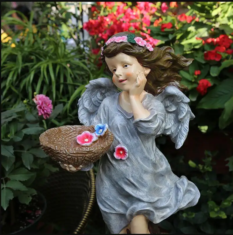 Product Name: Vaso De Flores De Jardim Ao Ar Livre Enfeites De Resina Anjo Menina Figurinhas Artesanato Vila Americana Arte Escultura Estátua Decoração Pátio
