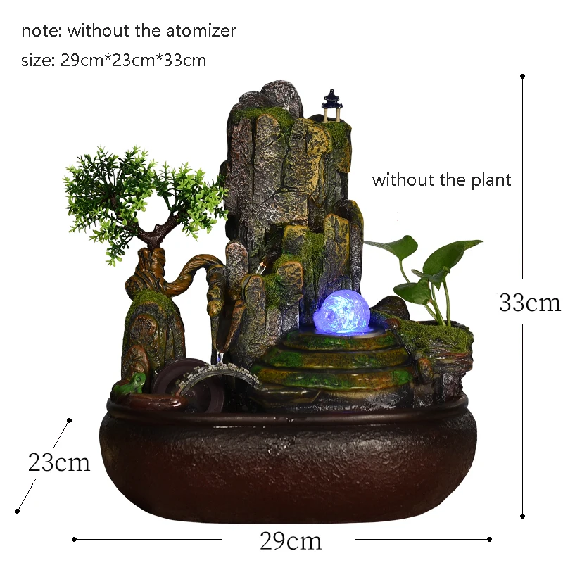 Product Name: 110 V-220 V Feng Shui Fonte De água Resina Rockery Paisagem Escritório Desktop Decoração Bonsai Vaso De Flores Waterscape Bola De Cristal Sorte