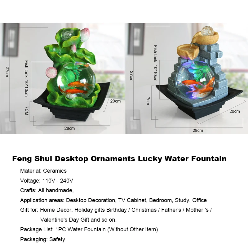 Product Name: 110-240 V Feng Shui Ornamento Fonte De água De Lótus Led Tanque De Peixes De Vidro Sorte Bola De Cristal água Características Vaso De Flor Presente De Casamento
