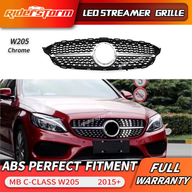 Product Name: Para C Classe W205 Led Grill Streamer Diamante Frente Malha Grade Led Drl Grade Para C180 C200 C250 C300 Led Facelift Amortecedor Dianteiro